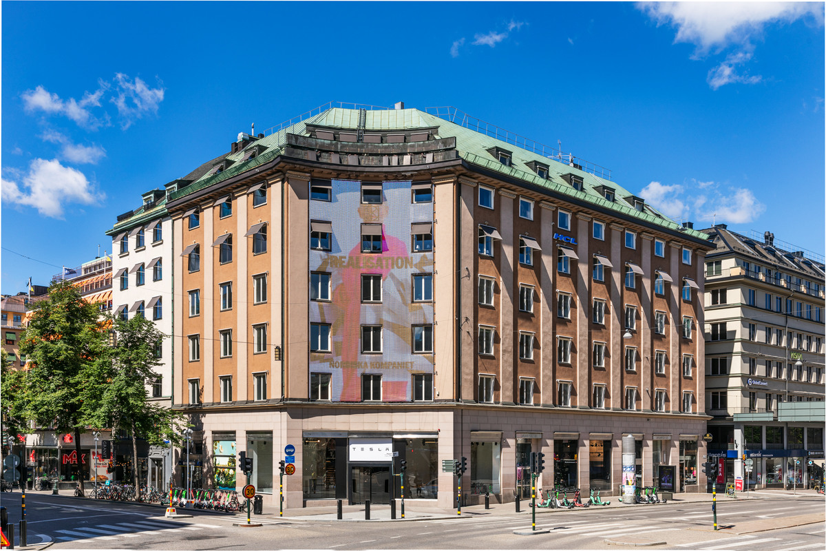 Korsningen Sveavägen och Kungsgatan är förstås en av Stockholms mest kända stadsbilder, med neonskyltar, det blå Konserthuset och de stora husen med konkava hörn. I det nordvästra hörnet av denna korsning byggdes två hus, i en tid av stark utveckling. Idag är de två husen sammanbyggda, omsorgsfullt restaurerade och uppdaterade.